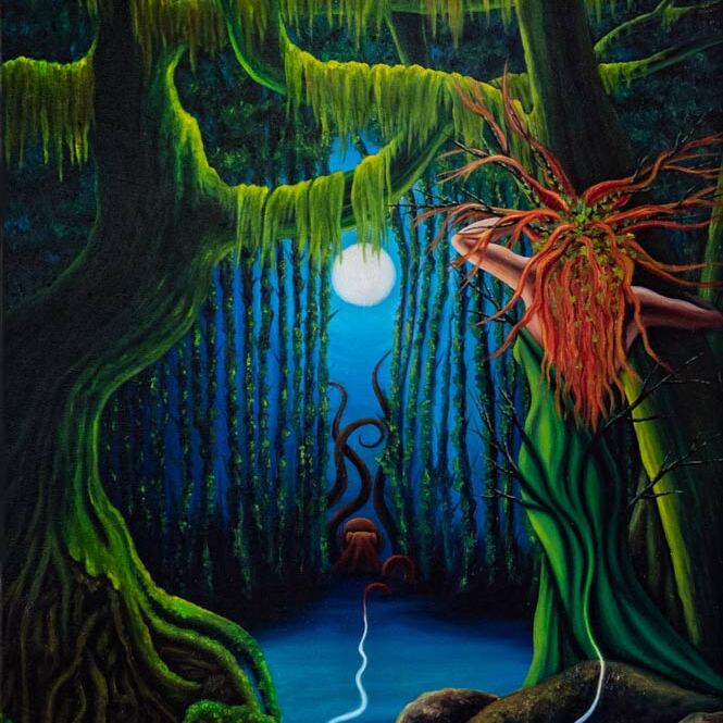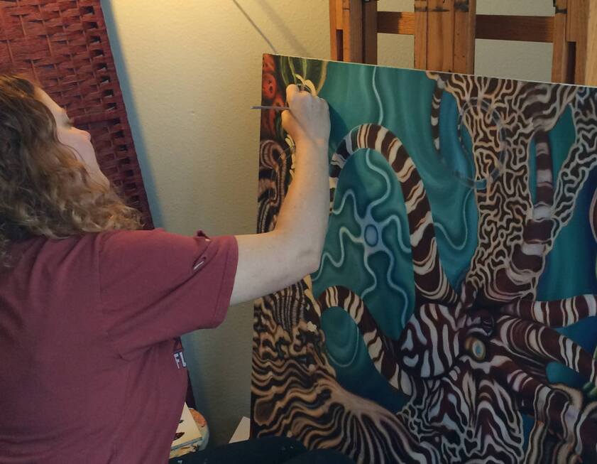 I have shown my work at galleries in Florida, Minnesota, New York, and Washington. One of the hardest things for me when I show my work is when someone wants me to explain the meaning of one of my paintings. I would much rather have them tell me what it means to them, what story they create in their mind when they look at my work.